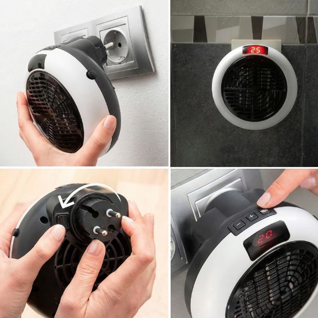 - Portátil y Universal (Sin Cables): Es extremadamente ligero (solo 400 gramos) y compacto. Llévalo a cualquier lugar (baño, oficina, garaje o camper) y se enchufa directamente a la toma de corriente, sin cables. 🔌❌