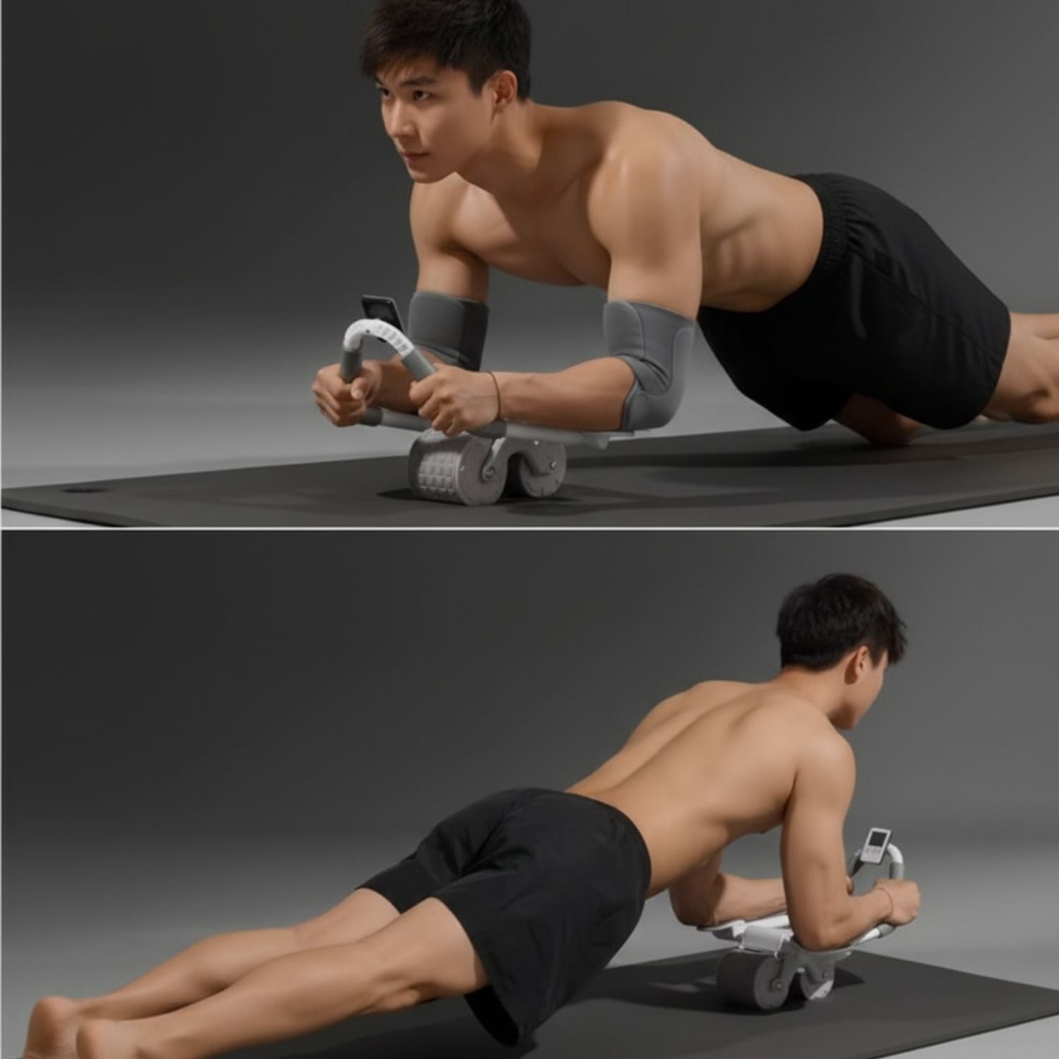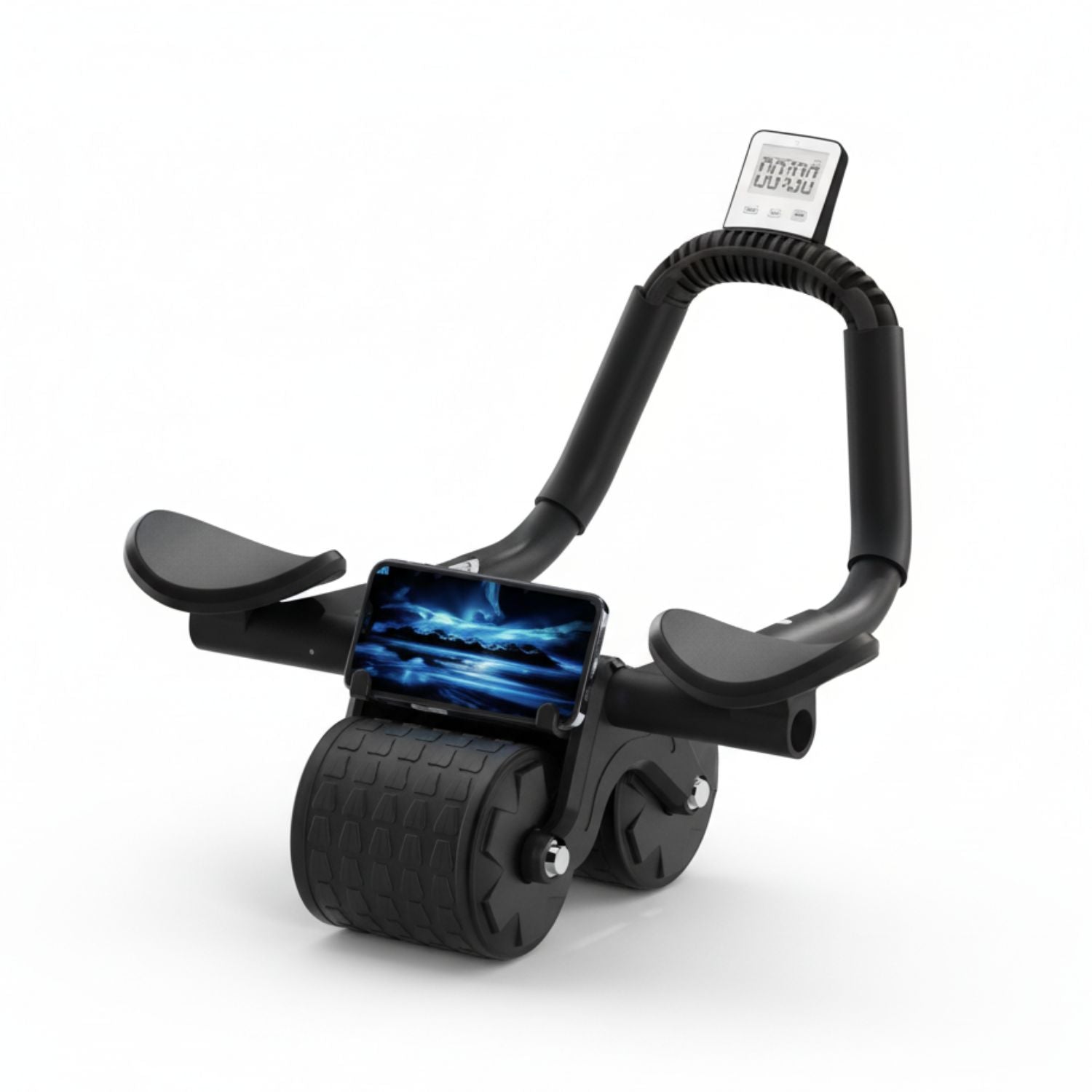Rodillo abdominal con apoyabrazos, cronómetro y alfombrilla para rodillas